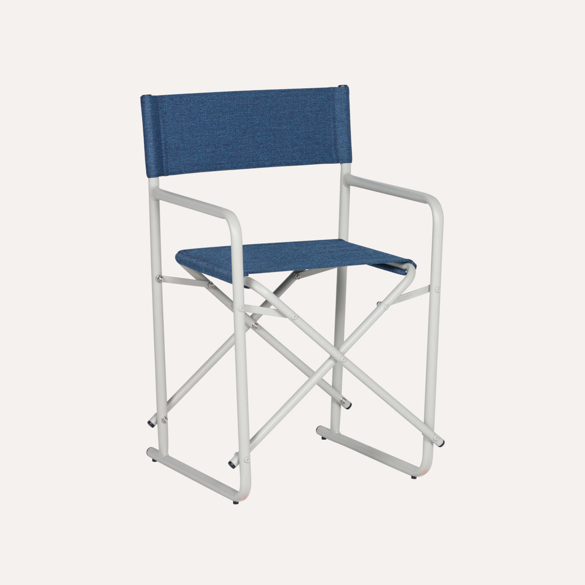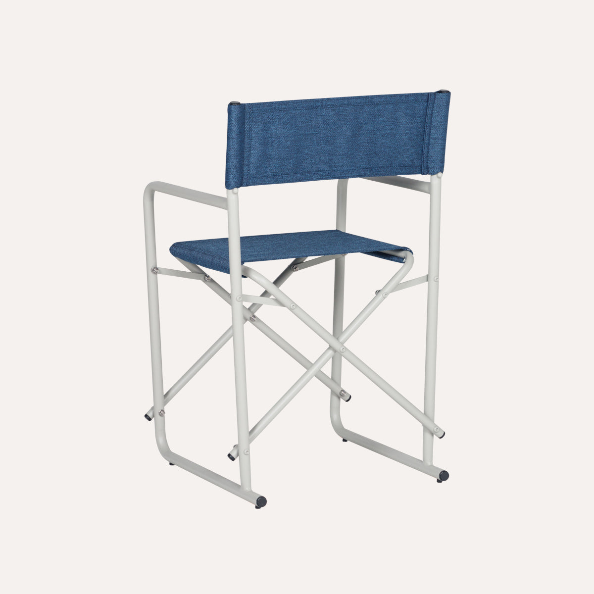 - Encosto e assento em linho azul escuro.