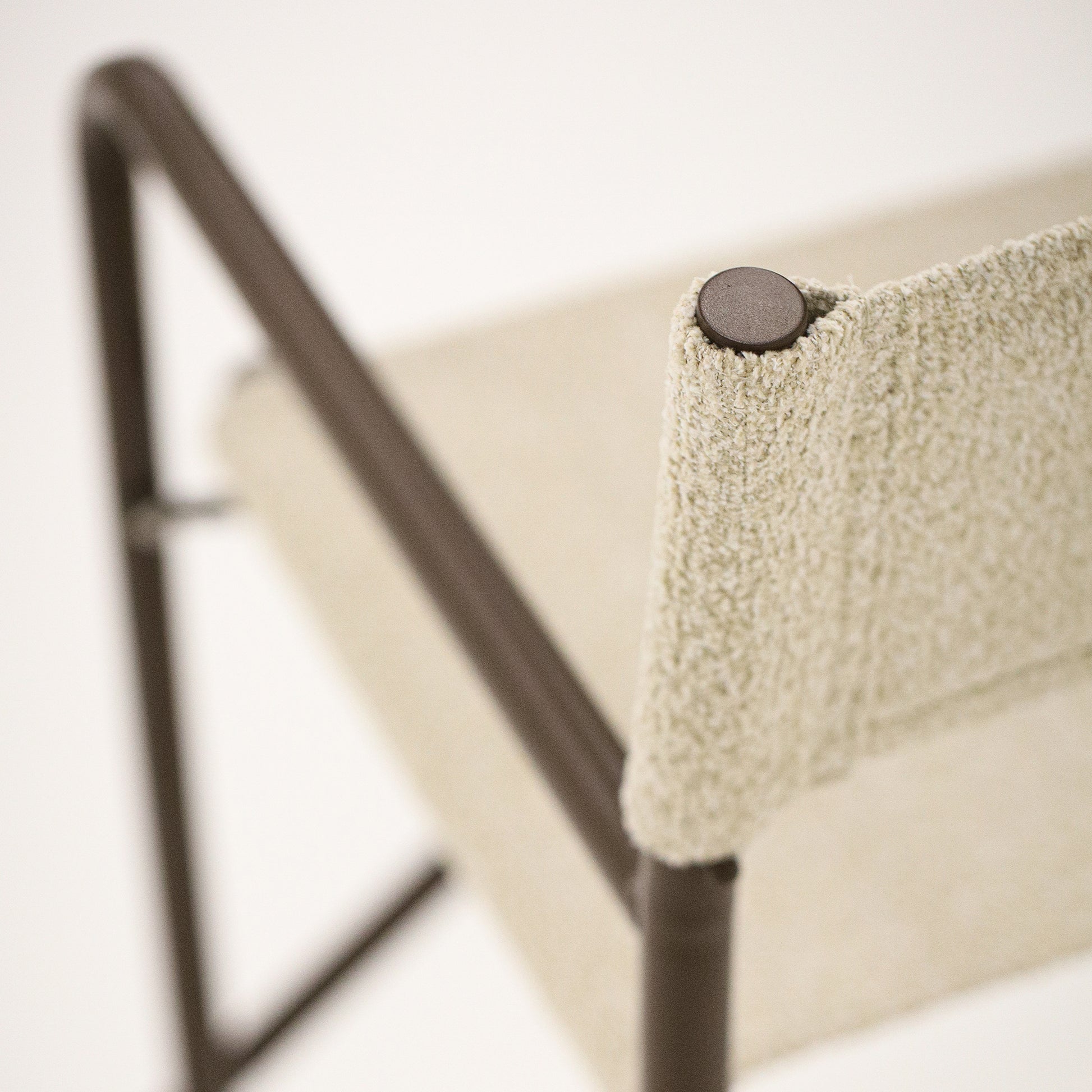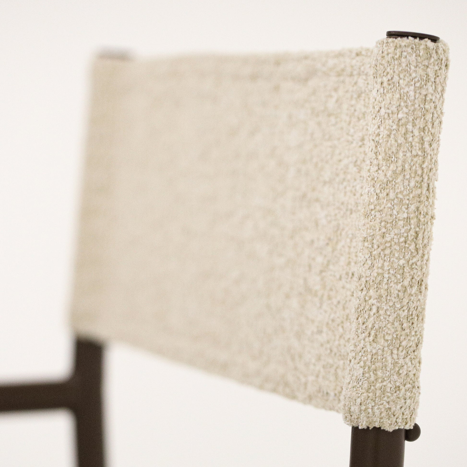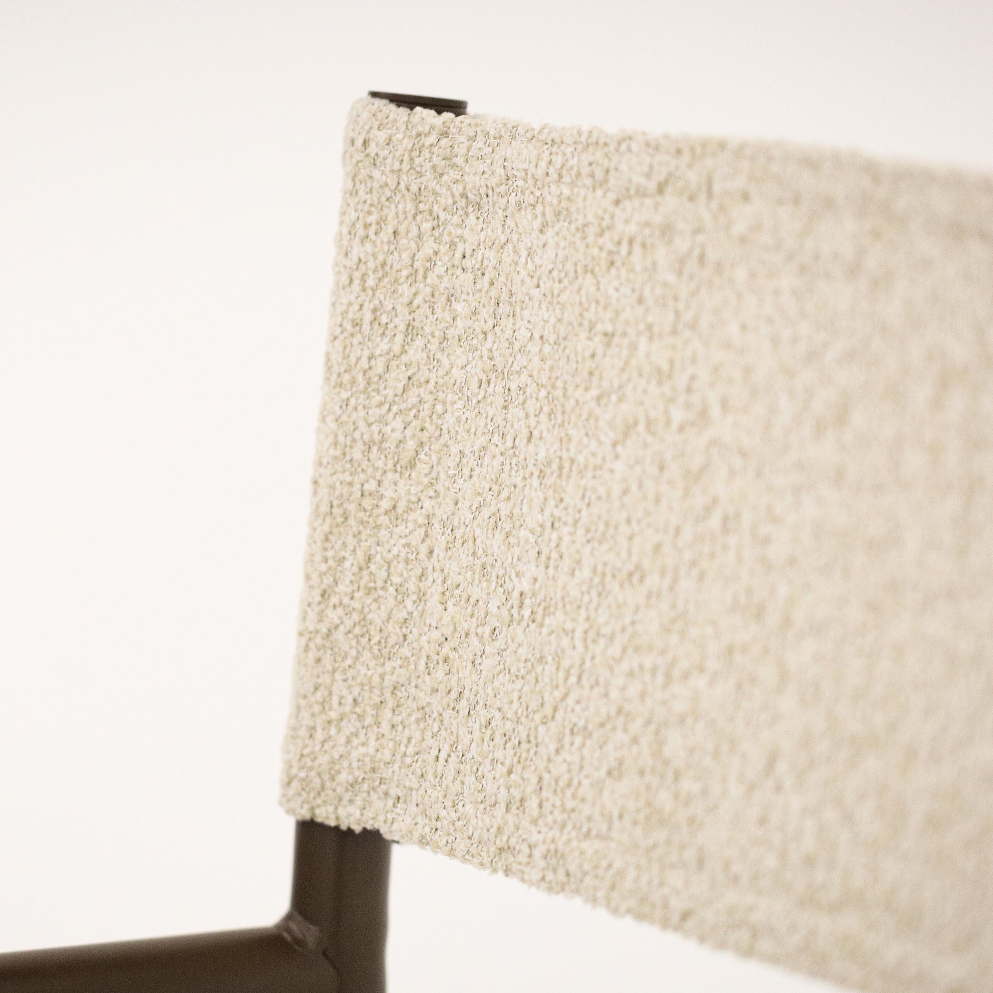 • Encosto e assento em bouclê bege.