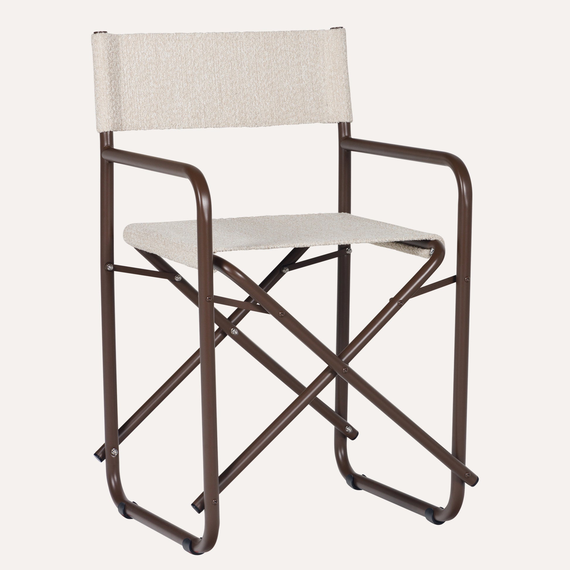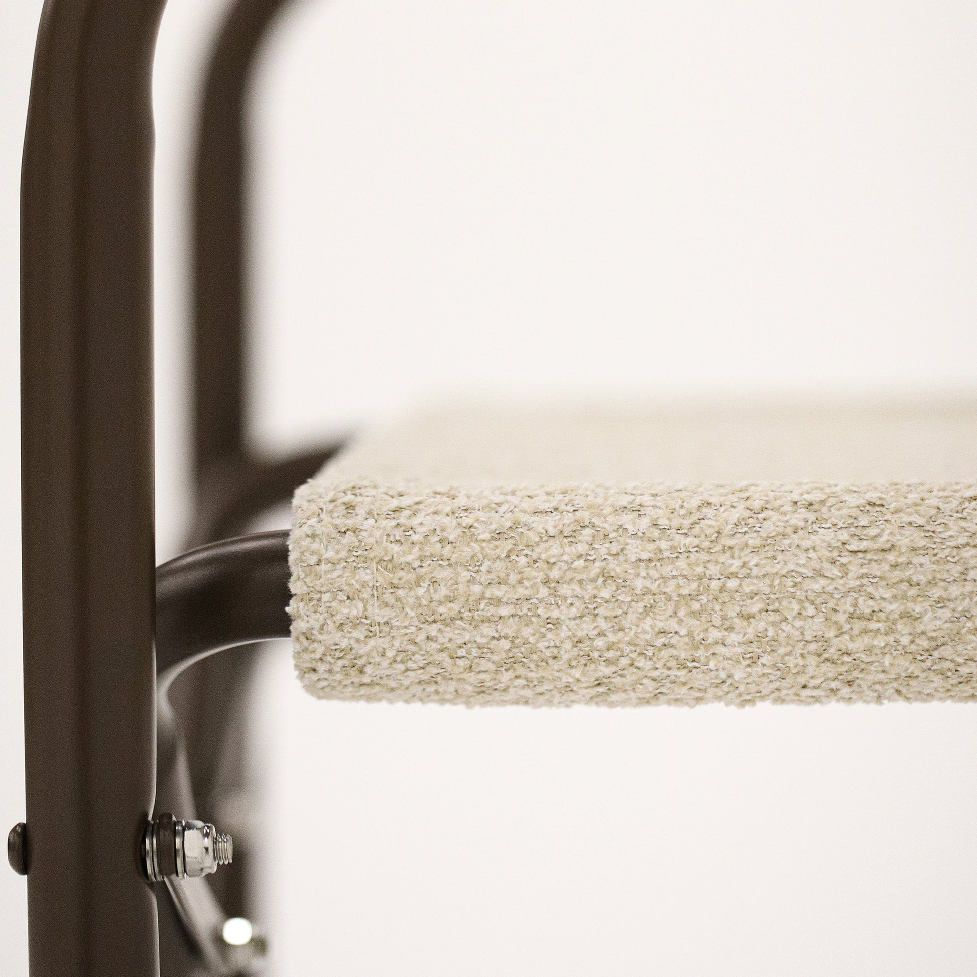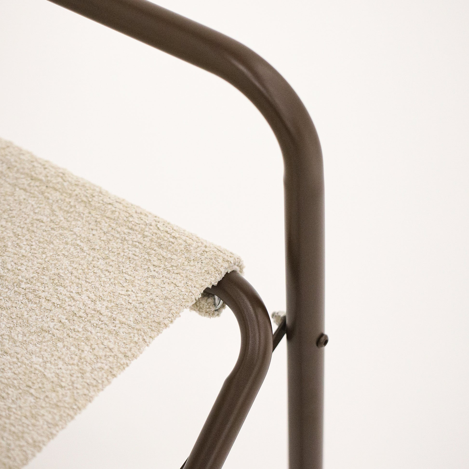 • Encosto e assento em bouclê bege.
