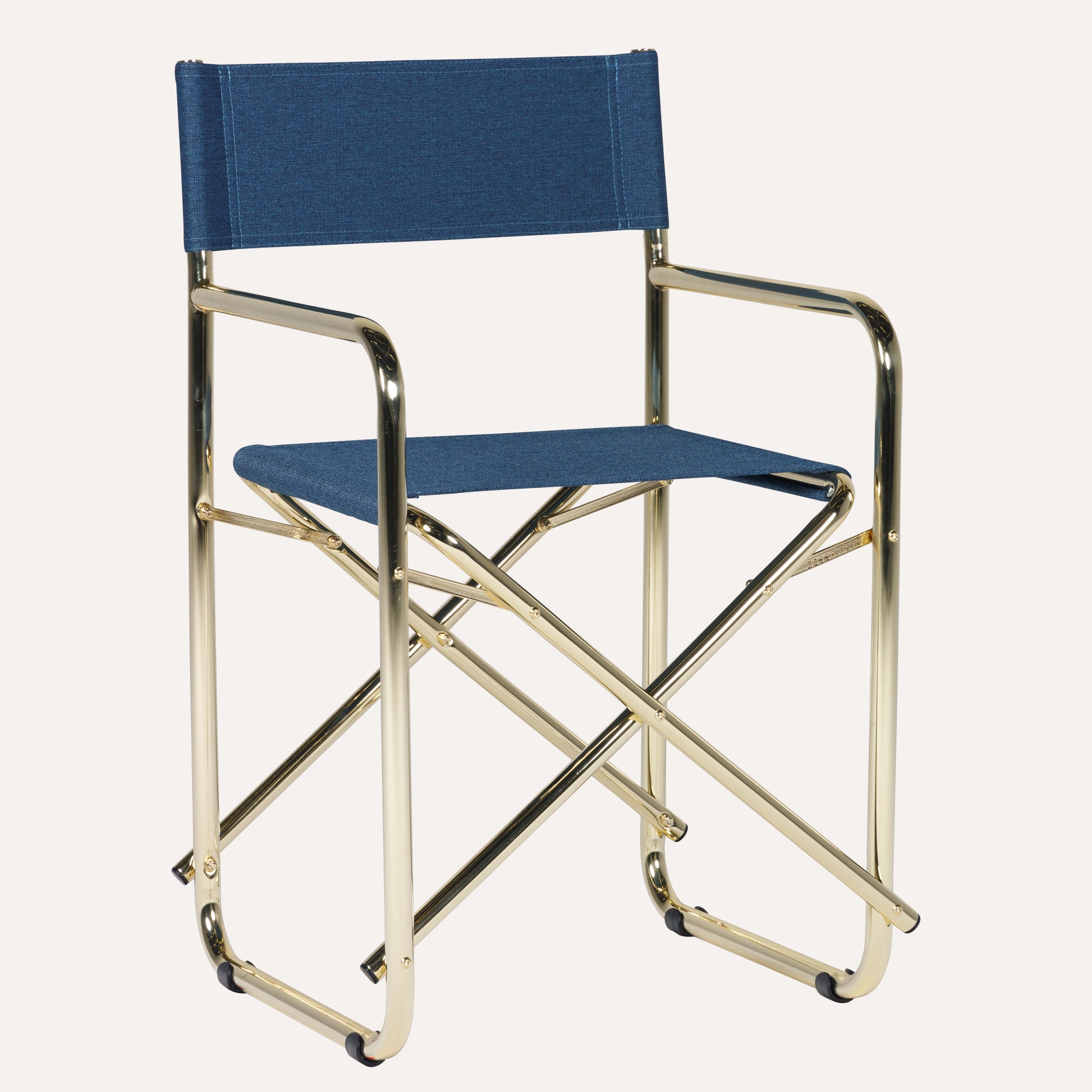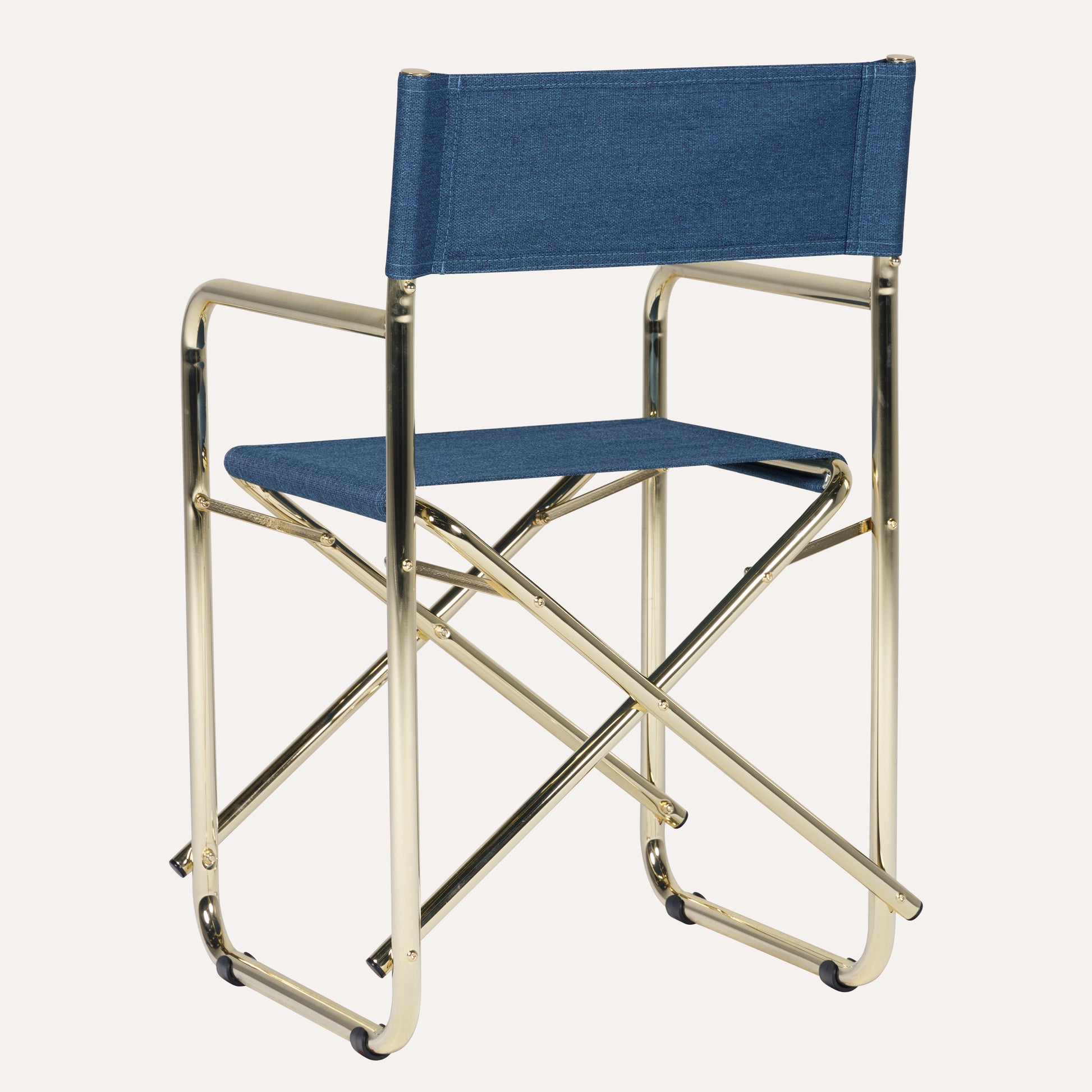- Encosto e assento em Linho Azul Escuro.